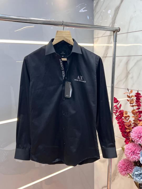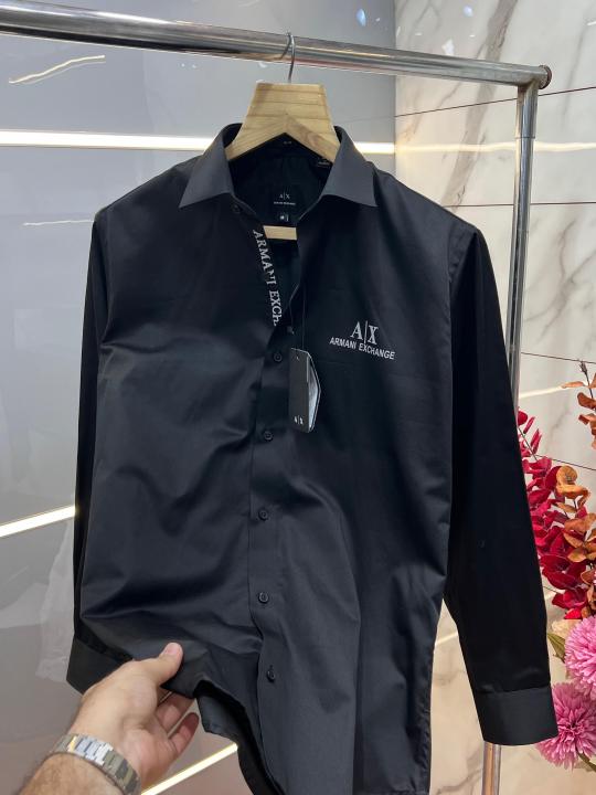 Arman i Exchange Black Premium Imported Reflective Printed Shirt with with custom Branded Button Tagging And Brand Packing 3285