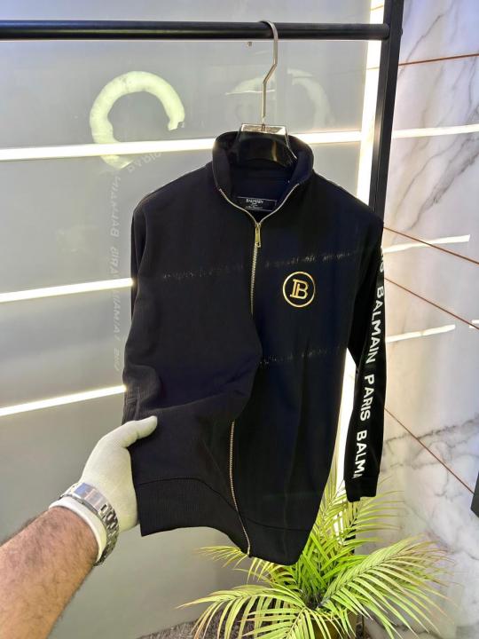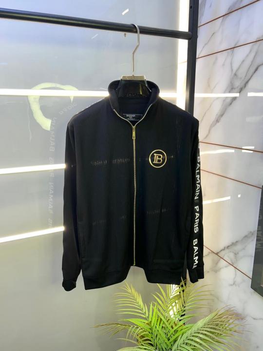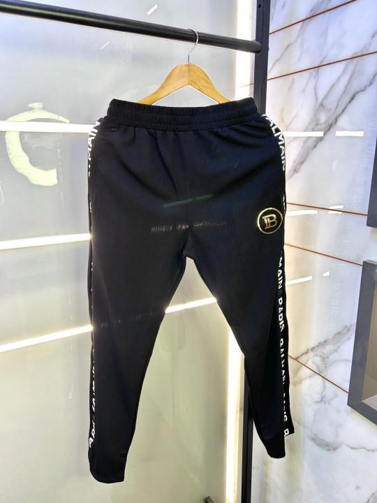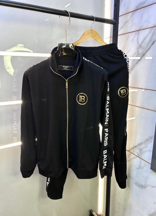 Home Premium Track Suits Balmai n Paris Black Imported Embossed Print Premium Track Suit Brand Carry Bag Packing F3221-BL