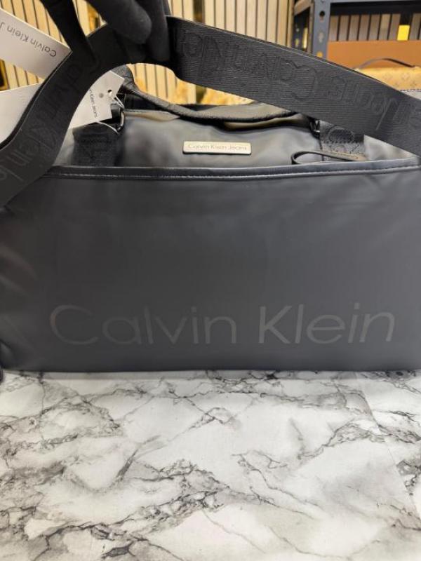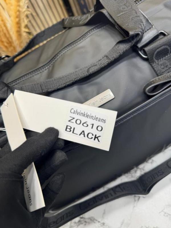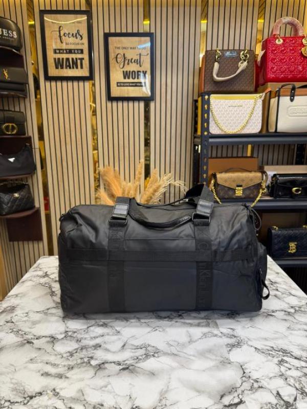 Calvin_Klein Black Travel Duffle Bag with Front Zip Pocket & Logo Detail (Z0610-Black)