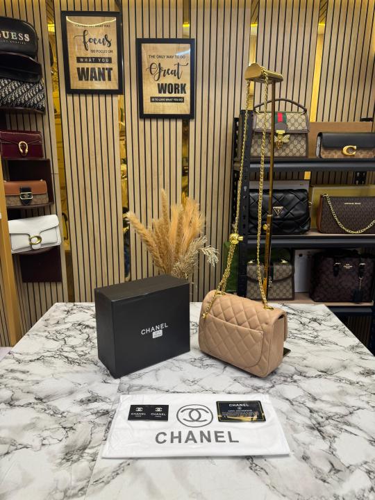 Chane_l Classic Flap Mini Quilted Chain Shoulder Bag (Apricot) (3015)