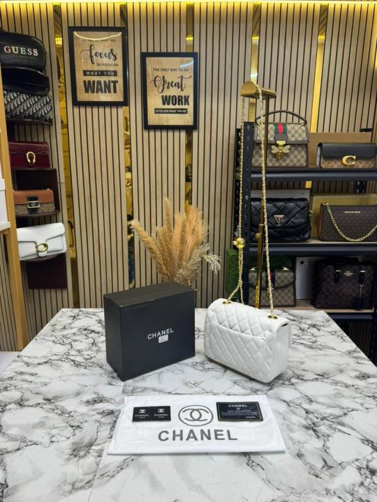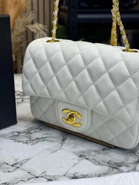 Chane_l Classic Flap Mini Quilted Chain Shoulder Bag (White) (3015)
