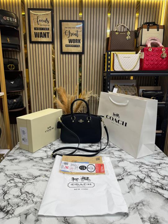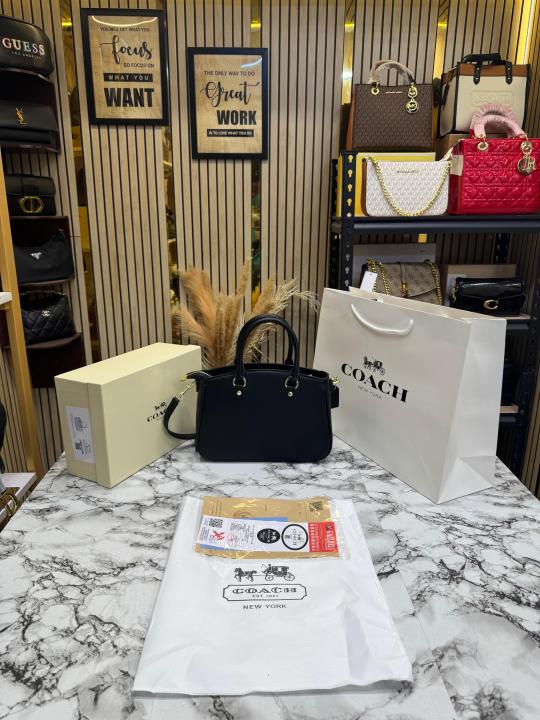 Coac_h Signature Leather Satchel Top Handle Bag With Box And Dust Bag Including Carry Bag (Coffee)