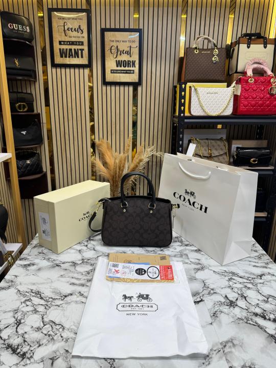 Coac_h Signature Monogram Leather Satchel Top Handle Bag With Box And Dust Bag Including Carry Bag (Coffee-3616)