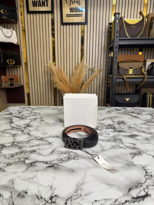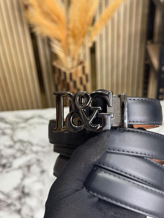 D&G Black Leather Belt With Glossy Logo initials Buckle