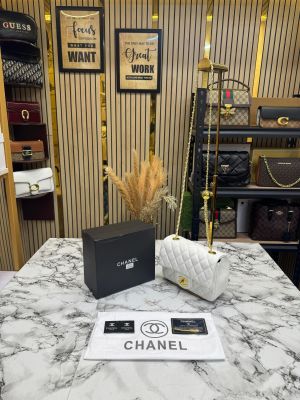 Chane_l Classic Flap Mini Quilted Chain Shoulder Bag (White) (3015)
