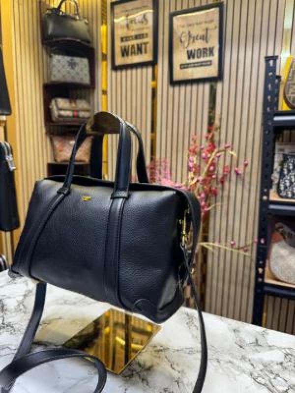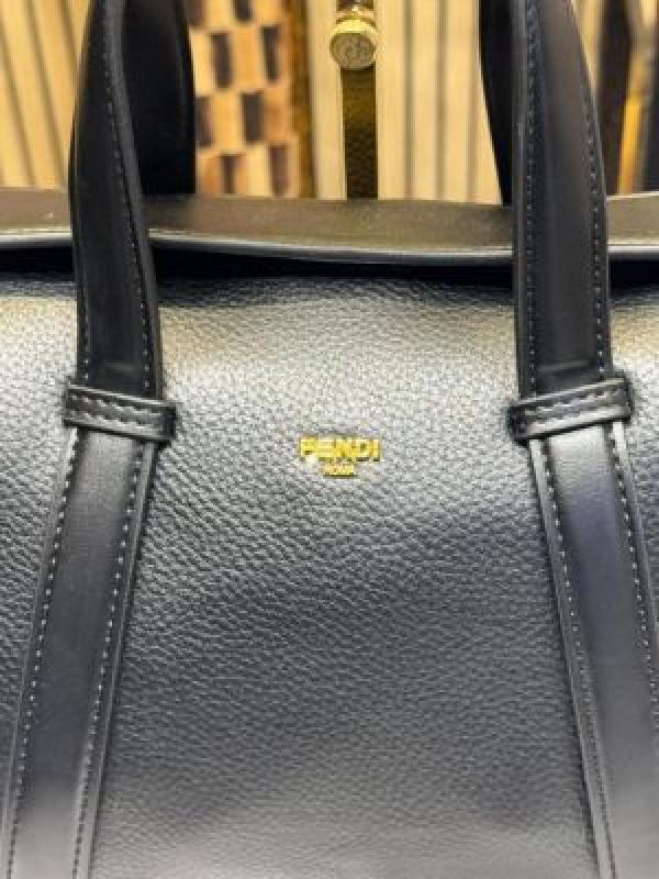FEND_I LEATHER BOWLING HANDBAG WITH SLING PREMIUM QUALITY WITH DUST BAG (BLACK) (V-202221)