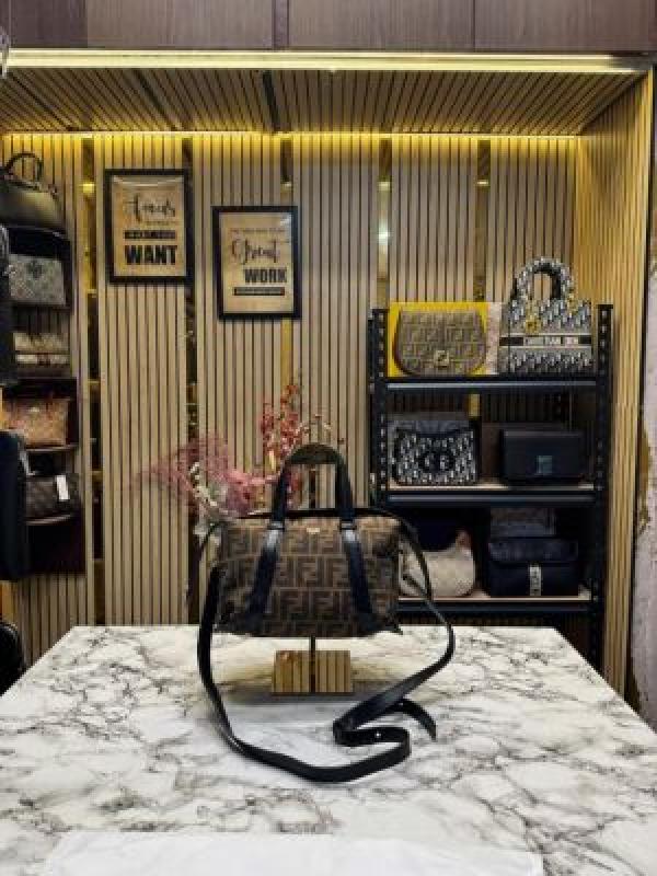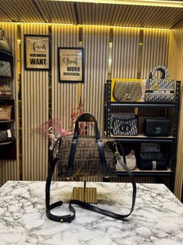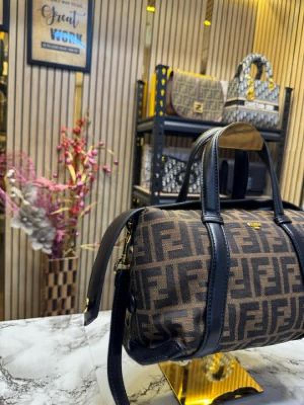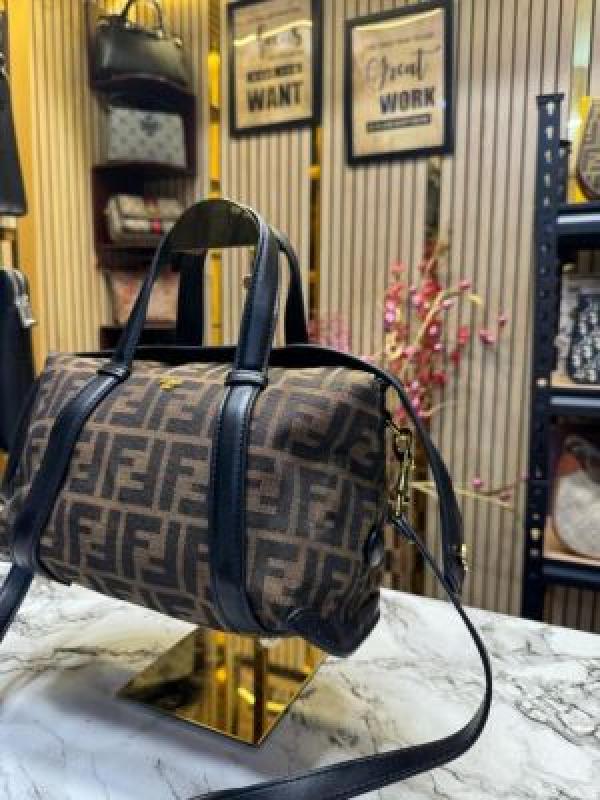 FEND_I LEATHER BOWLING HANDBAG WITH SLING PREMIUM QUALITY WITH DUST BAG (COFFEE BLACK) (V-202221)
