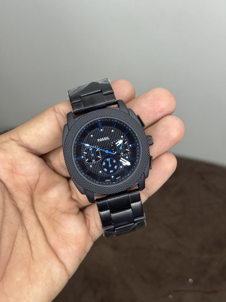 Home Mens Watch Fossi l All Black Chronograph Metal Watch