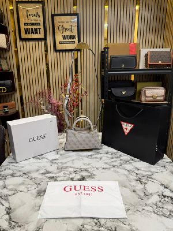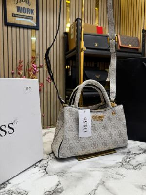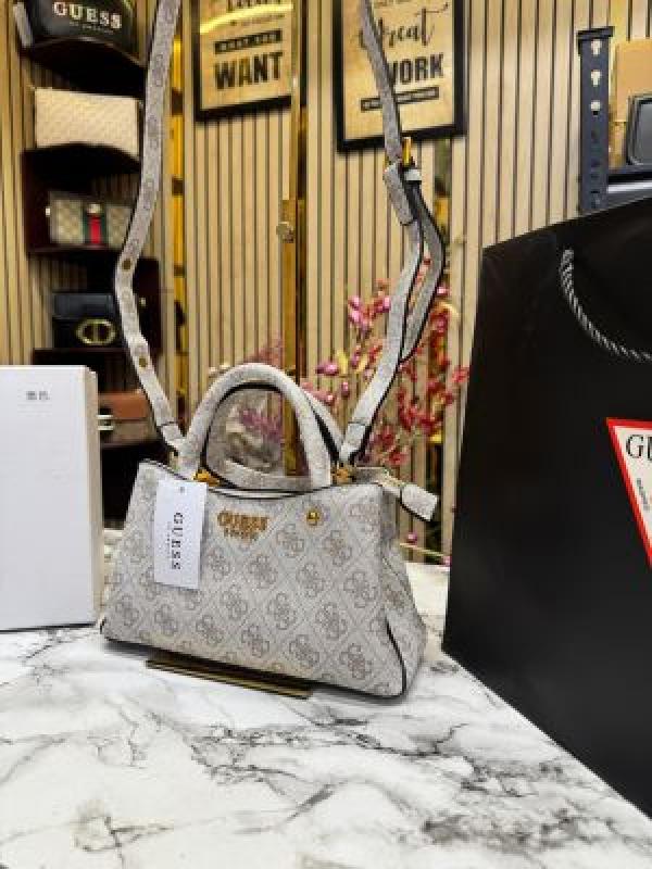 Guess Manhattan Shoulder Bag With Box And Dust Bag Including CarryBag (V2) (Beige white)