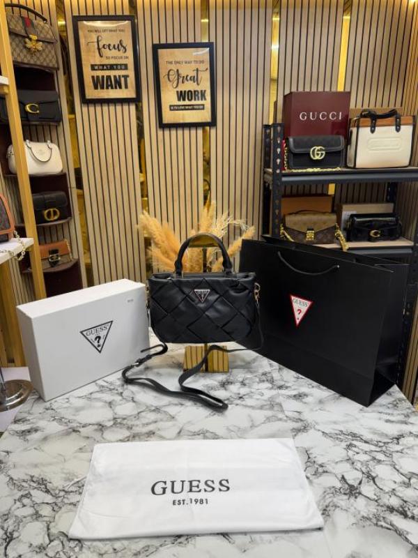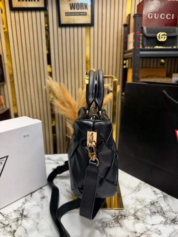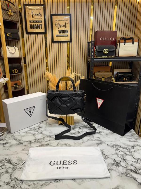 Guess Zaina Textured Structured HandBag With Box And Dust Bag Including Carry Bag (Black)