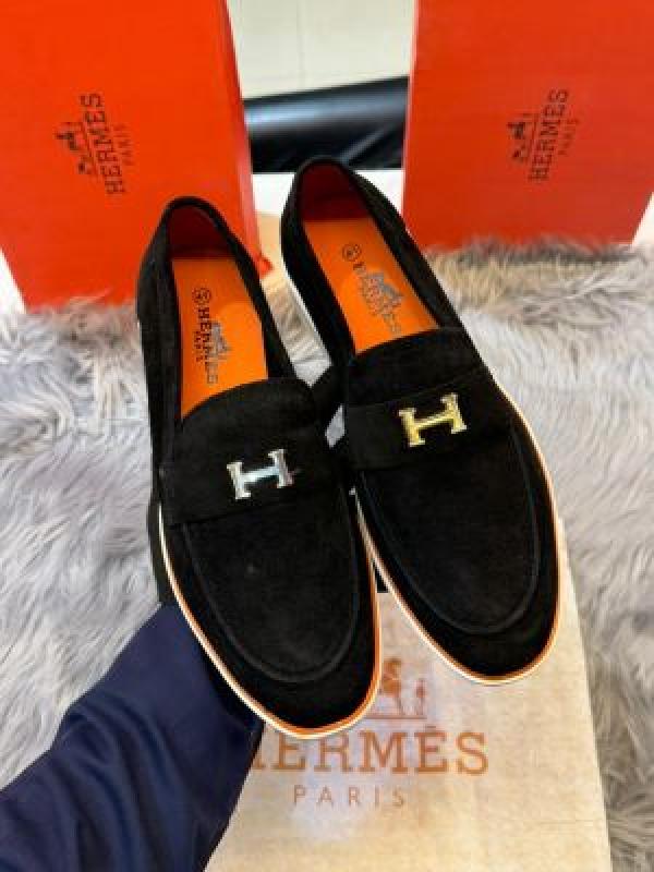 Hermes_logo Black 100% Genuine Suede Leather