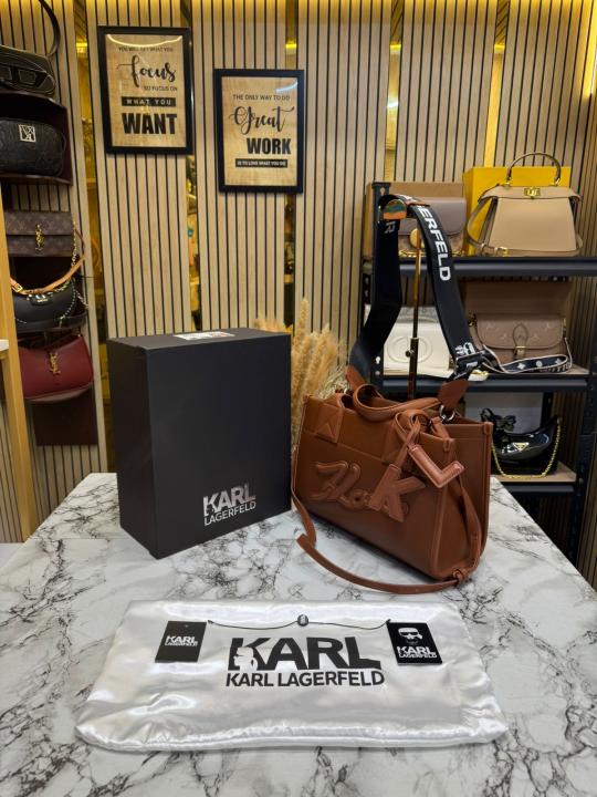 Karl Lagerfeld KSKUARE Embossed Hand Bag Brown (V-KA775)