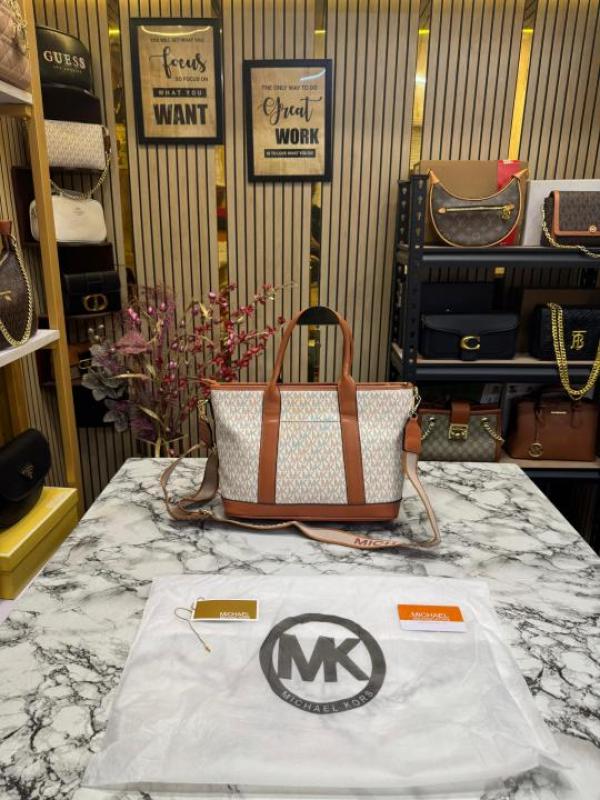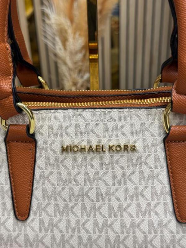 Michael_Kors Logo Signature Satchel Handbag With Dust Bag (Beige) (V-24002)