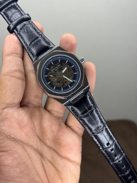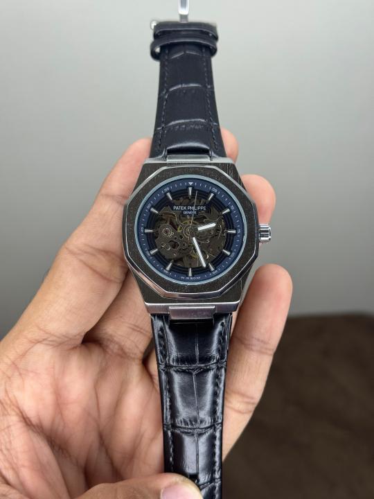 Home Mens Watch Patek Philippe Skeleton Silver-Blue Automatic Watch