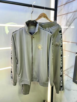 Balmai n Paris Grey Imported Embossed Print Premium Track Suit Brand Carry Bag Packing F3221-GY