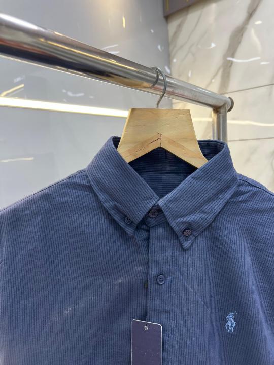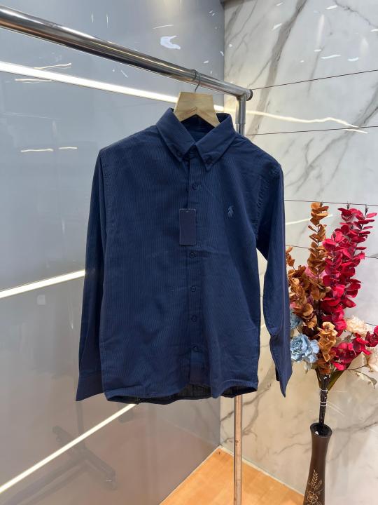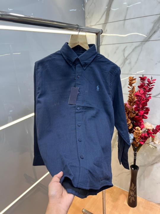 Home Shirts Ralp h Laure n Navy Premium Imported Self Design Shirt with Embroidered Logo and Poly Bag 4021
