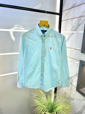 Home Shirts Ralp h laure n Peach Premium Imported Cotton Linen Fabric Shirt with Embroidered Logo 4025