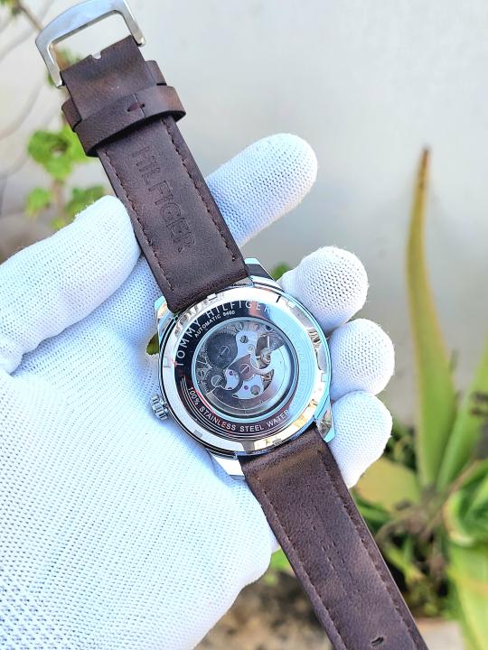 Tommy Hilfiger Automatic Leather Belt Brown White Dial