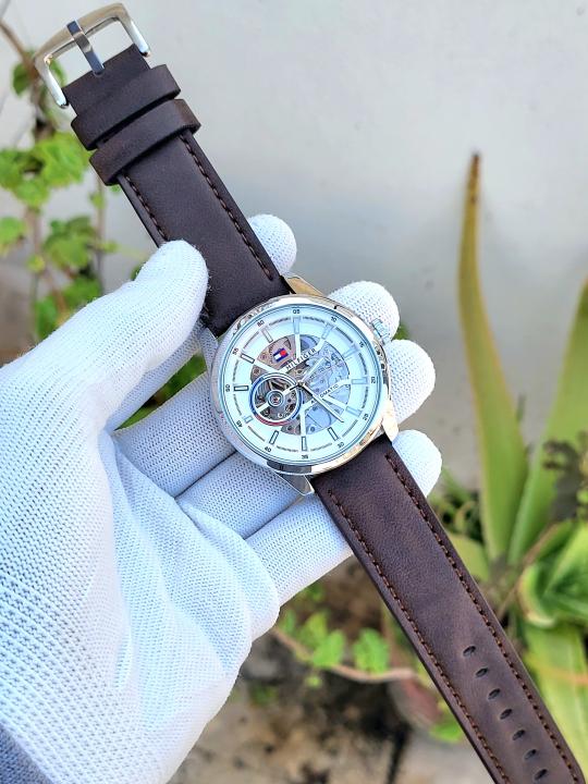 Tommy_Hilfiger Automatic Leather Belt Brown White Dial AT143