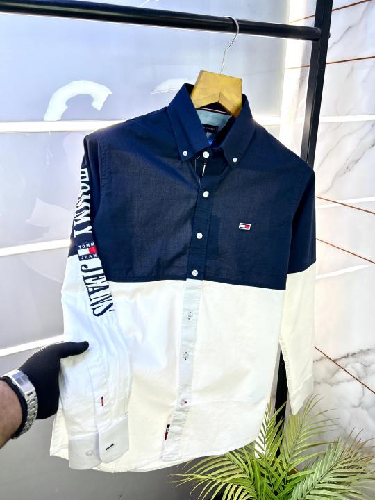 Tommy_Hilfiger White-navy Oxford Lycra Premium Printed Shirts F2734-WN