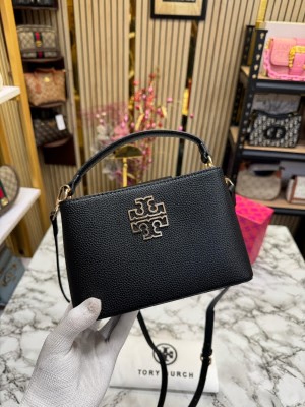 TOR_Y BURCH BRITTEN HANDBAG WITH SLIGHTLY DAMAGE BOX AND DUST BAG AND SLING (BLACK) (S2)
