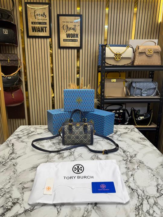 Tory_Burch T Monogram Petite Barrel Bag With Box And Dust Bag (T928-Blue)