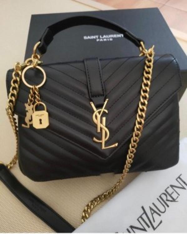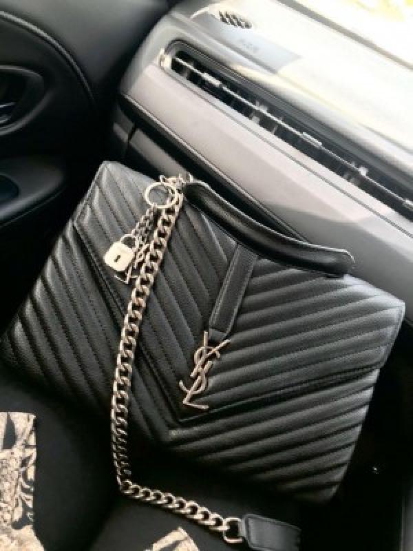 YSL SAINT LAURENT Grain De Poudre Matelasse Chevron Medium Monogram Satchel Black with box 536 (5246)